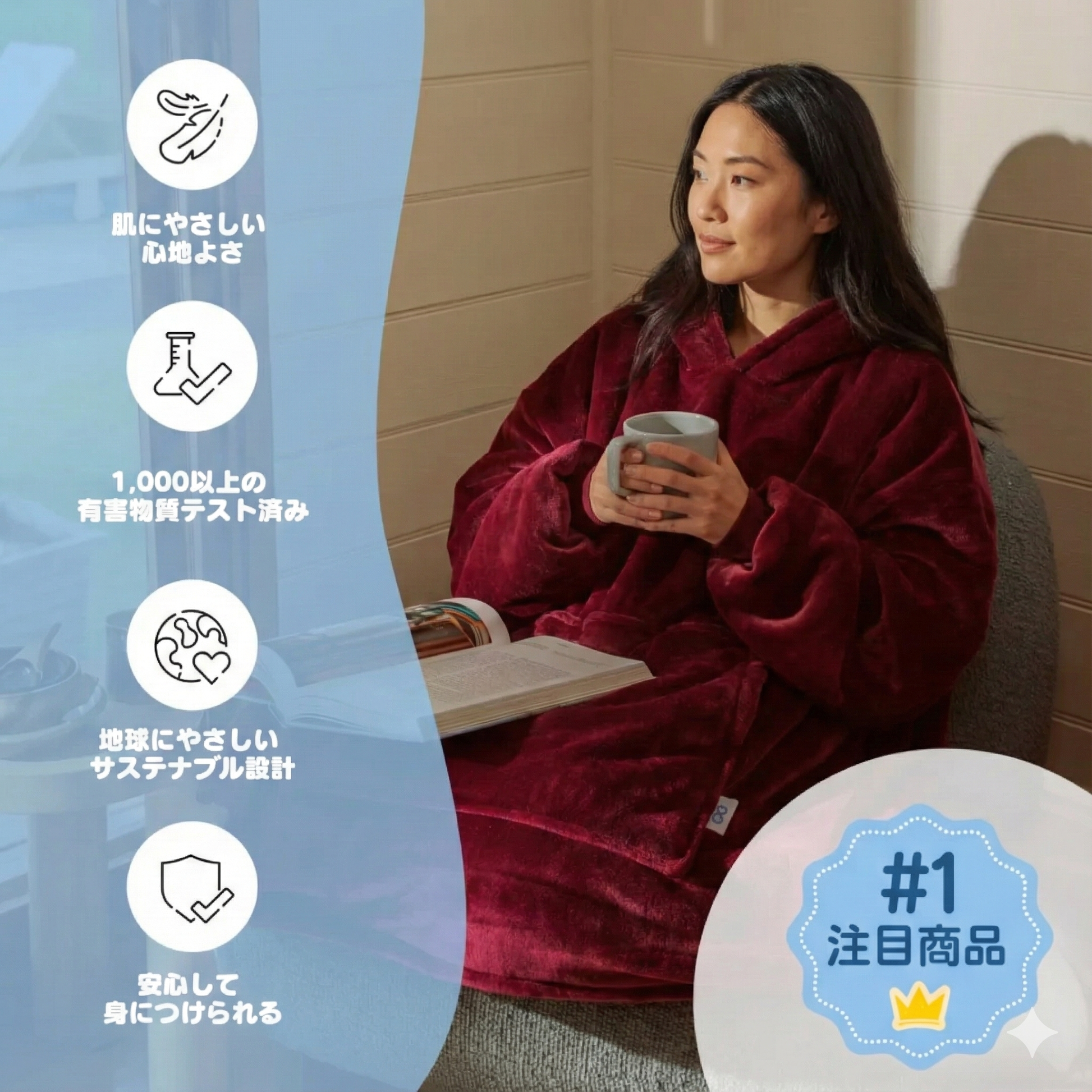 Hotto Tokyo™ ふわもこ着るブランケット・フード付きは、いつでもふんわり包み込まれるような心地よさを味わえる “着るブランケット” です。